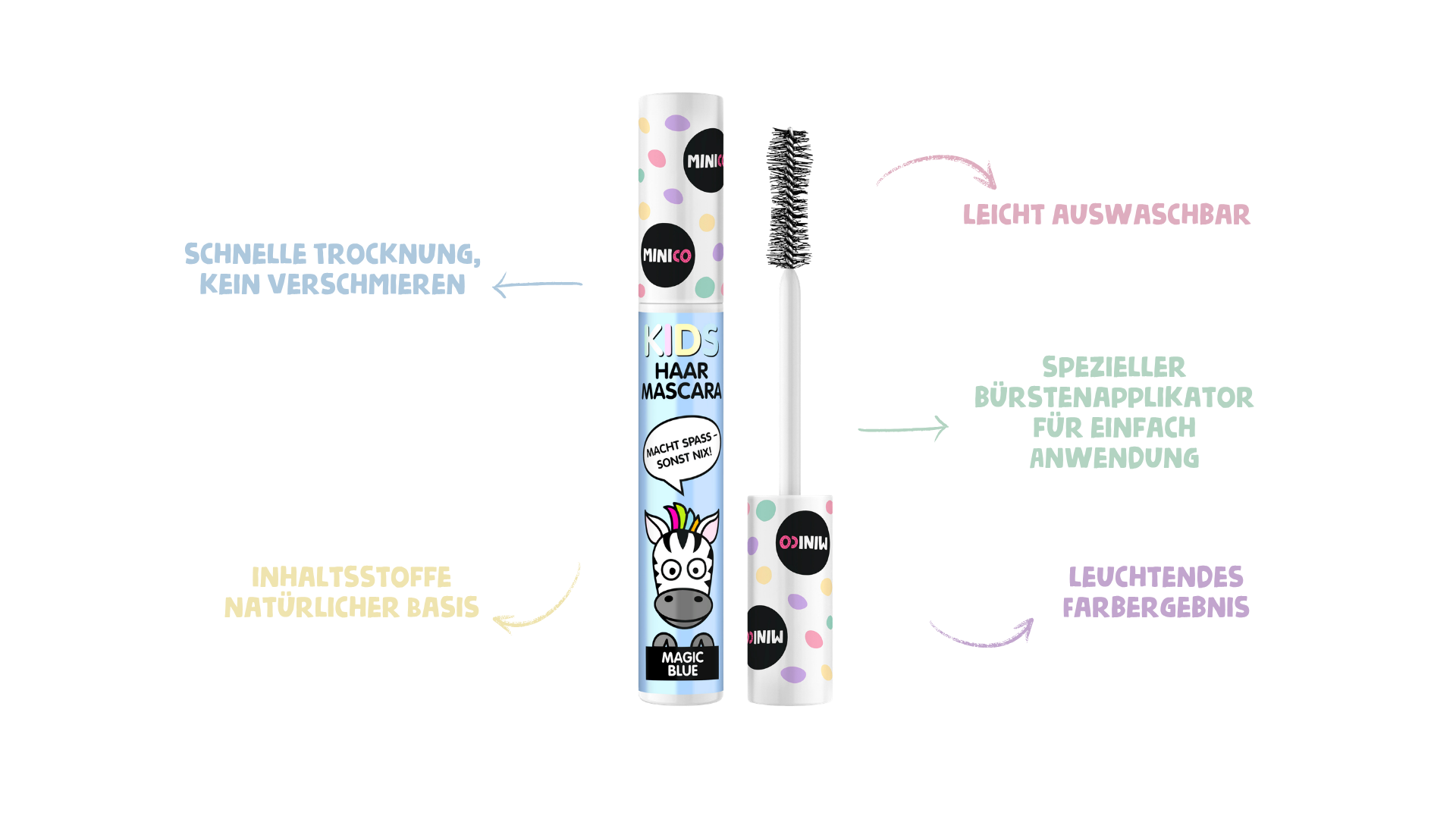 Mit dem praktischen Applikator ist die Anwendung der Haarmascara spielend leicht. Dank der speziell designten Bürste und der seidigen Textur, lässt sich die Farbe optimal im Haar verteilen: ob kleine Highlights, oder intensive Farbergebnisse. Hier sind der Fantasie der Kinder keine Grenzen gesetzt.